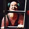 Max versucht umständlich, mit seiner Aluleiter eine kaputte