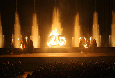 20 Jahre Traumfabrik war der Anlass diese 1,20 m hohe Ziffern, zusammen mit 6 fackeltragenden Mönchen, vor den illuminierten Wasserspielen in der Regensburger Donau-Arena brennen zu lassen.