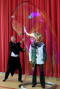 Seifenblasenkunst als Showdarbietung "Bubble Magic" vereint